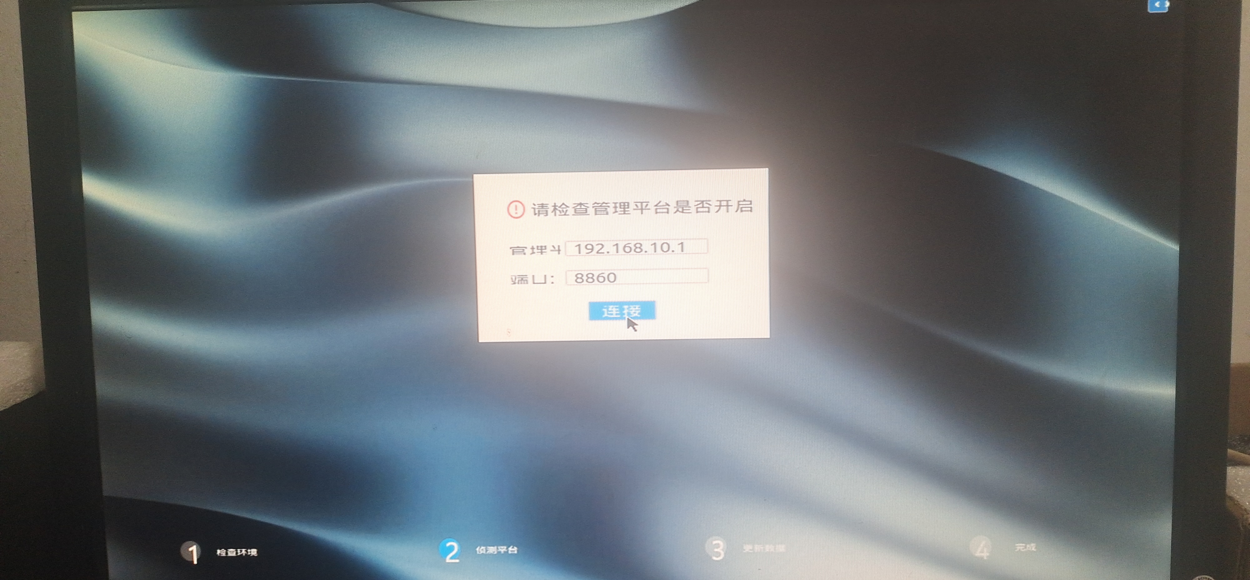 VDI-C5320V 刷机后,终端刷机版本H3C_SpaceOS-E1011P11-x86_64.iso 重启终端,出现终端初始化,“提示请检查管理平台是否开启”,VDI-C5320V终端是开启状态。
