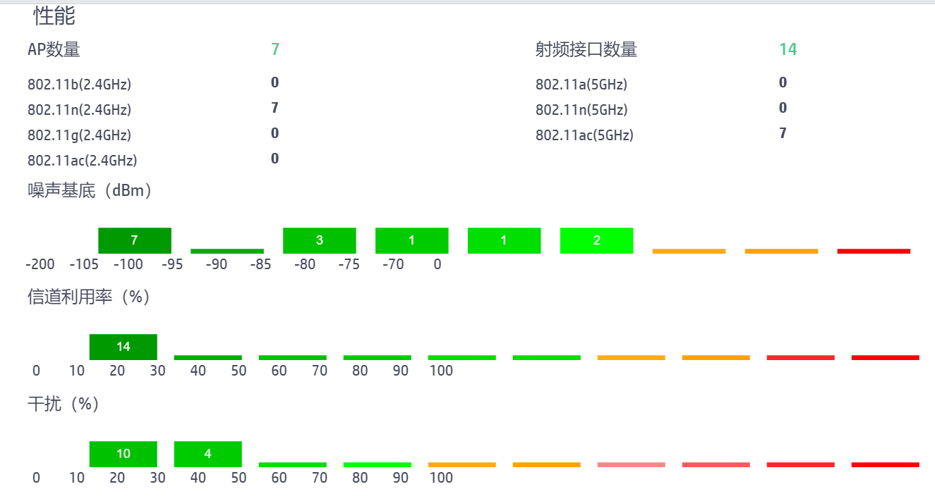 越绿越优,意思就是 噪声基底、信道利用率、信道干扰几项参数都会优