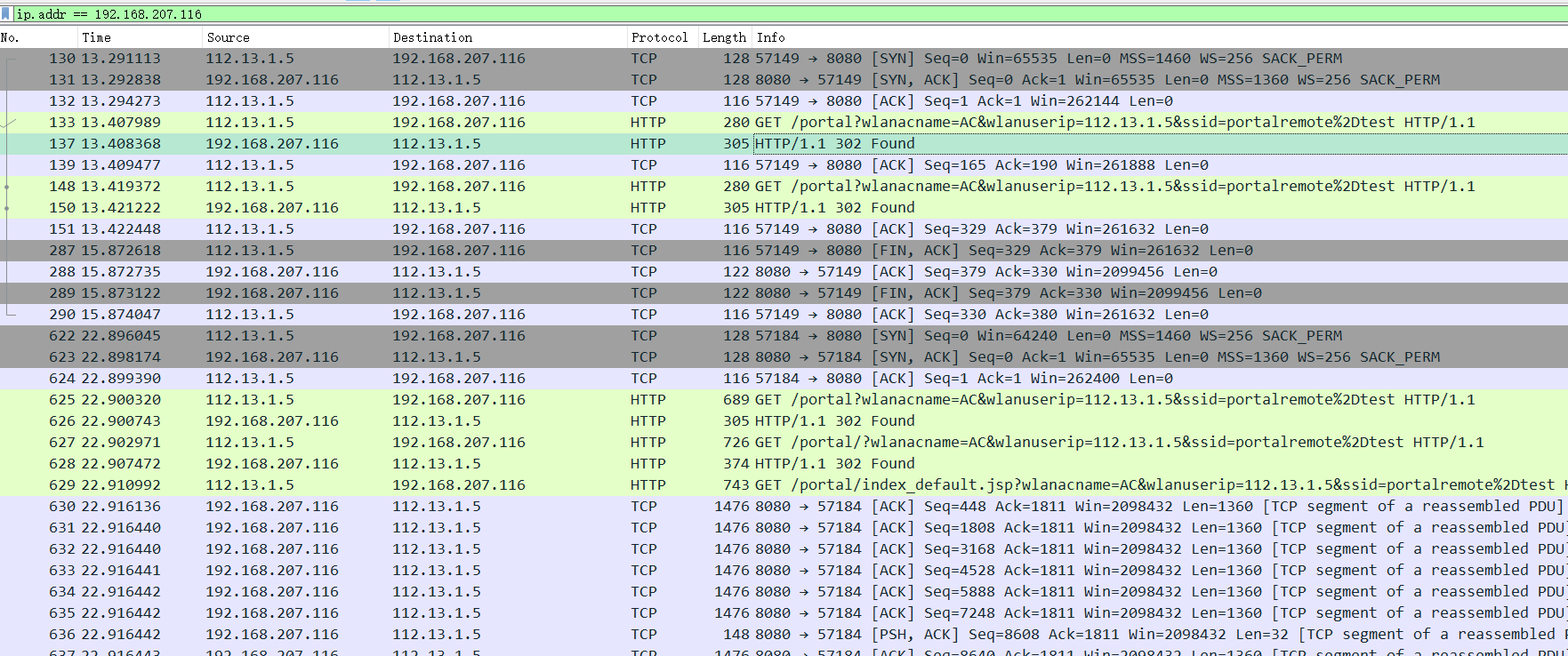 上线终端与iMC服务器的交互仅有http和tcp报文,AC开启debugging也没有portal和radius报文。但是终端确实已经认证成功了: