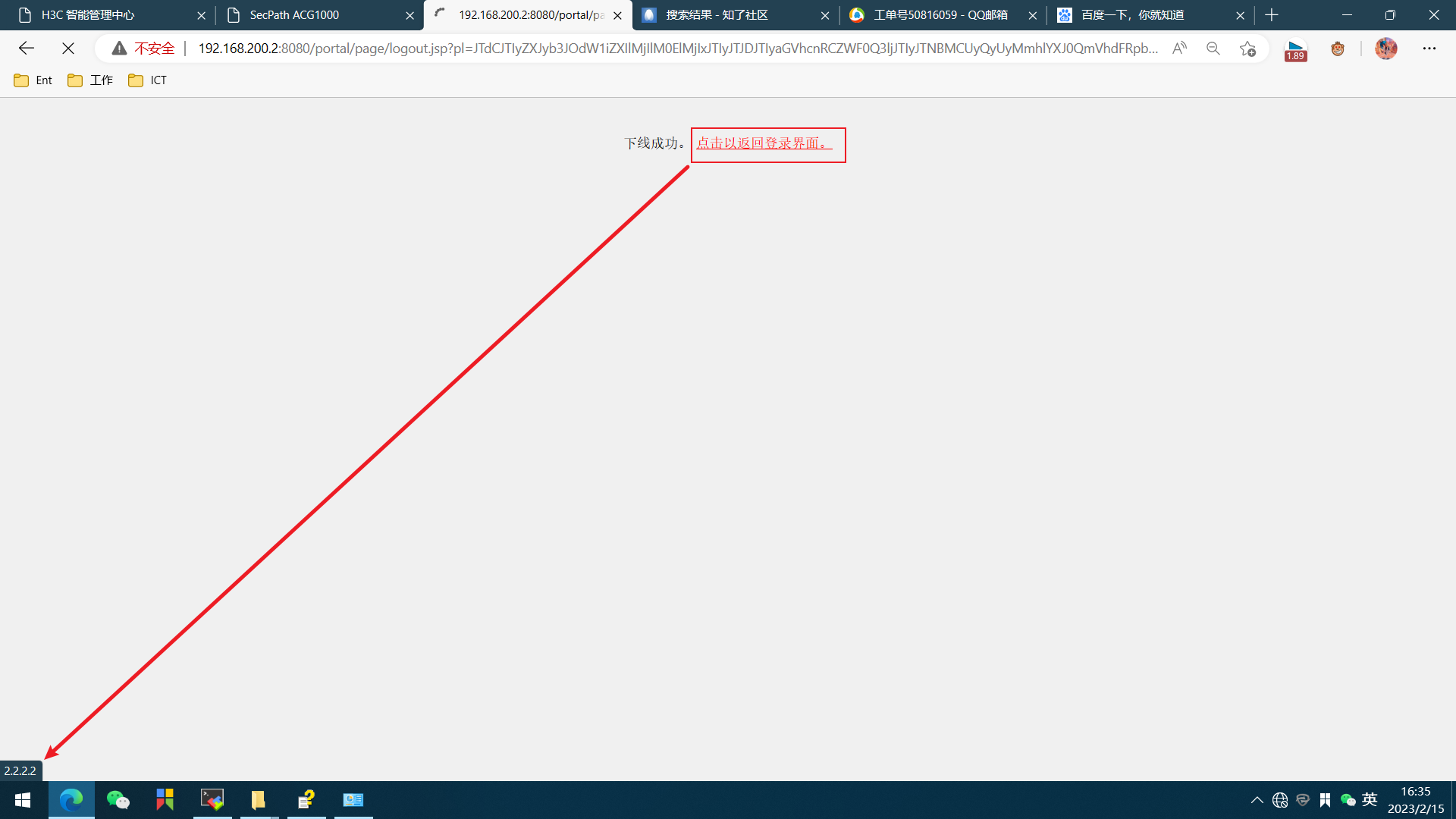 2.2.2.2是任意地址,理论上只要用户前面下线成功了,再输入个2.2.2.2这时候是会被重定向的