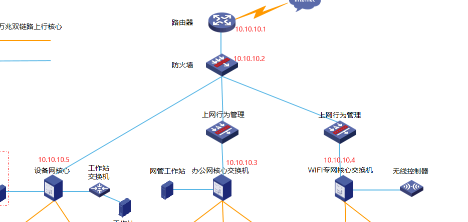 如图 上部分路由器和防火墙我跑三层流量,那防火墙下联的端口模式改怎么做 防火墙和ACG都是透明部署的,我搞不懂这个思路,因为有三张网,每个的管理段都不同,到时候怎么用各自的网段去管理他们