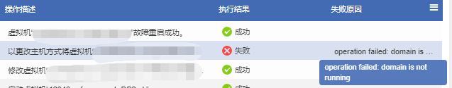 因宿主机内存故障需要迁空虚机,再迁移虚机时失败,提示虚机故障重启 报错:operation failed: domain is notrunning