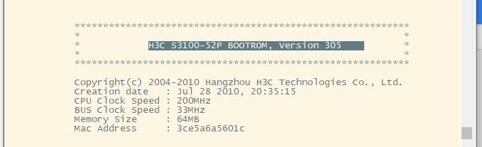 原版本:H3C S3100-52P BOOTROM, Version 305