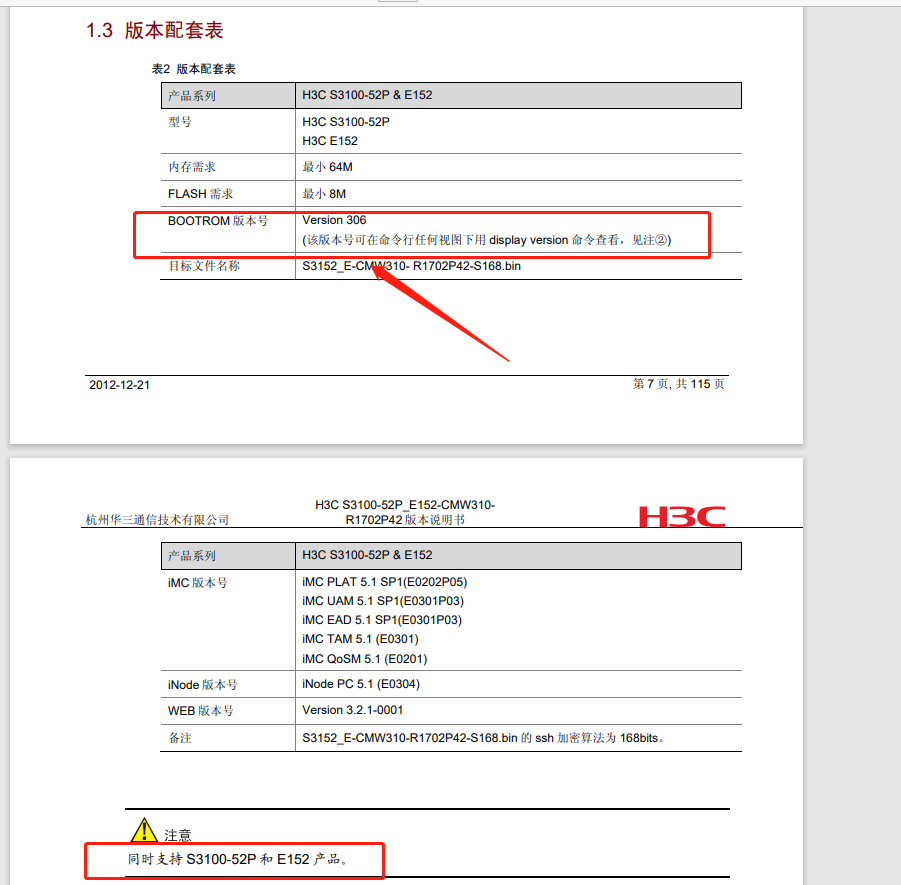 下载升级的是:S3152_E_V306.btm (官方升级文档同时支持 S3100-52P 和 E152 产品。