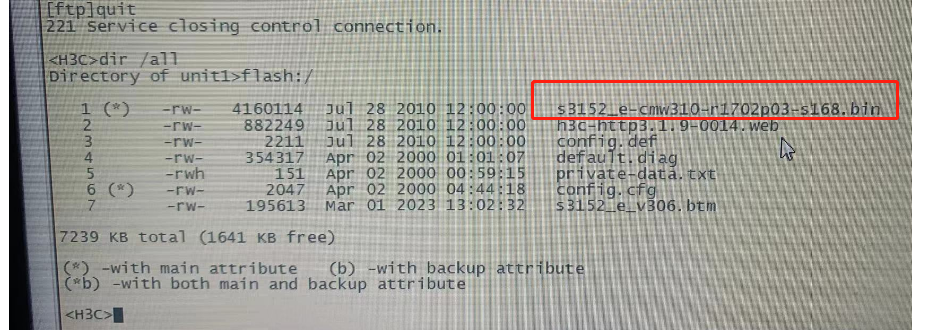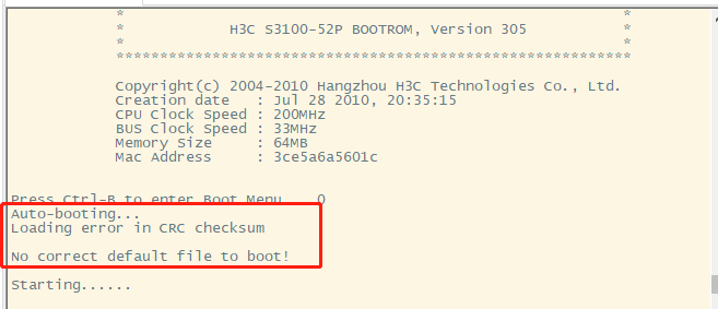 FTP 实现远程加载 方式升级 boot bootrom S3152_E_V306.btm一直失败,重启交换机就提示校验错误