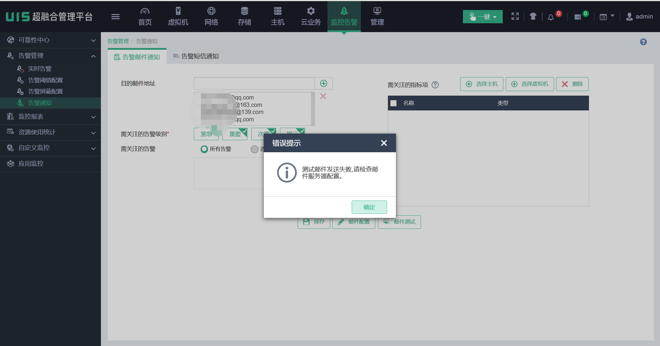 搭建开源的邮件服务器,刚开始是好的,果断时间就告警发送失败,配置无更改。版本是V7.0 (E0750P05)