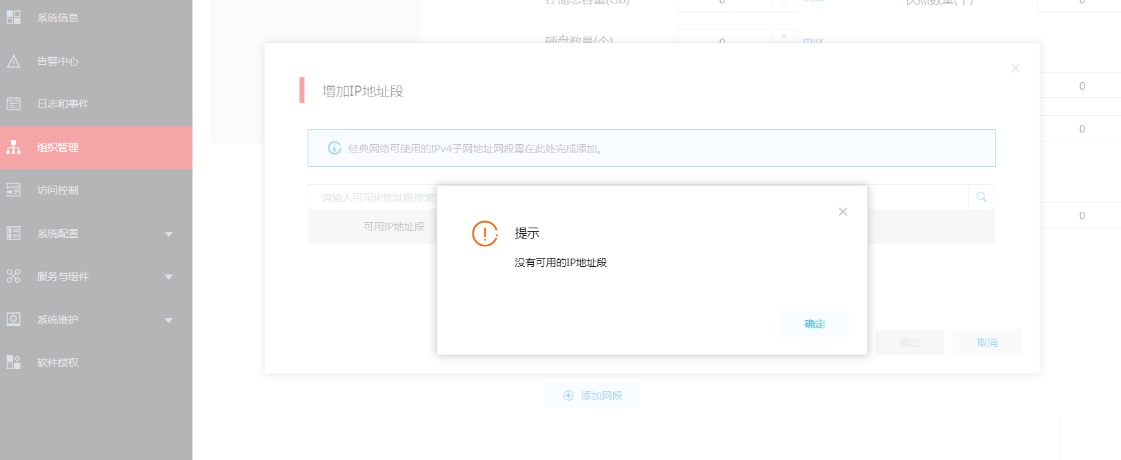 如下图,cloudos组织修改配额时,添加经典子网网段时报错无法添加,如下图,请问是何原因