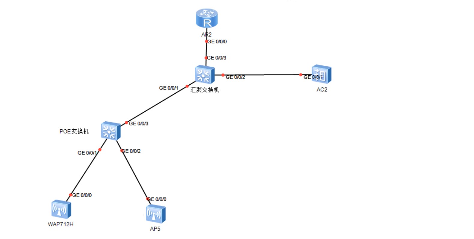 组网如图所示,实际中使用的AP是WAP712H,负责供电的交换机是傻瓜POE交换机。