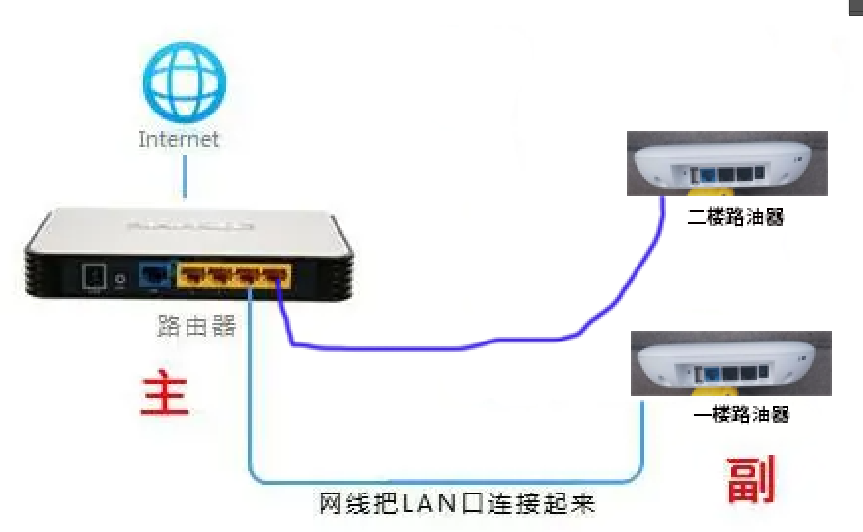 老家里两层小楼房,主路由是华硕的,希望链接一些需要有线链接的设备。想要按照lan-lan模式组网,这样能够方便切换ap。