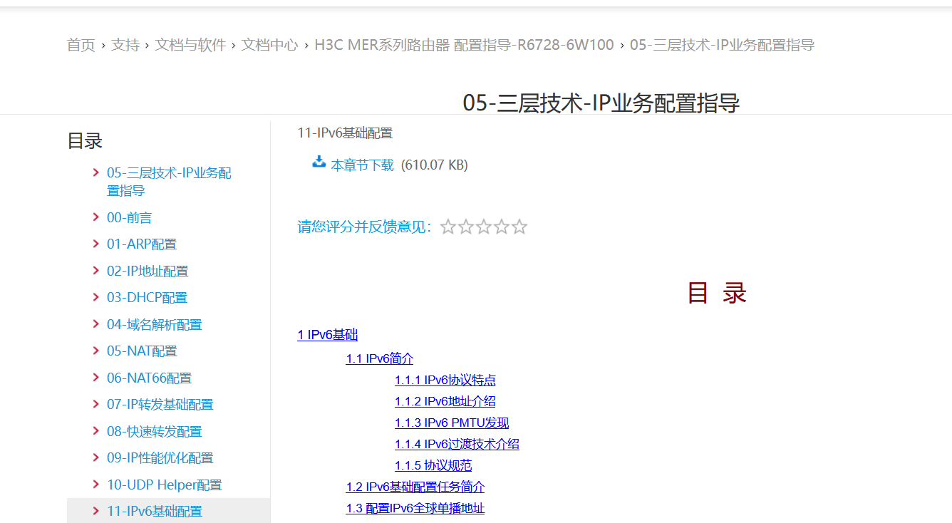 看配置手册支持IPV6功能