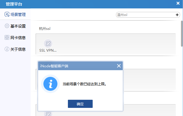用iNode管理中心生成的定制软件,创建了十个连接场景,第十一个就提示达到上限,怎么解决?