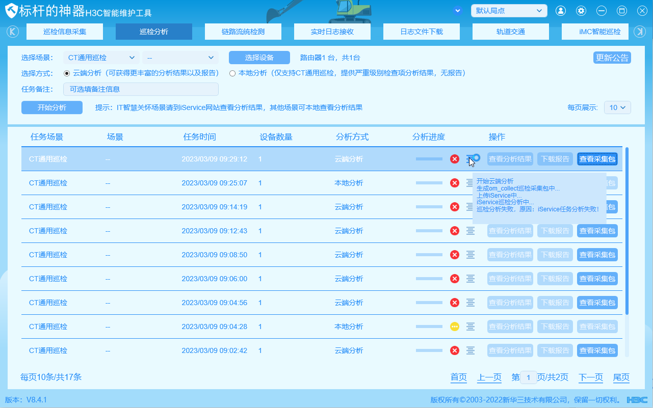 分析失败:巡检分析失败,原因:iService任务分析失败!