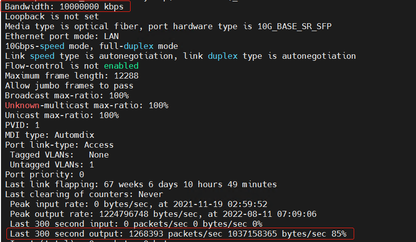 接口是万兆的,为什么才 1037158365 bytes/sec ,才使用1037M ,就显示85% 了?