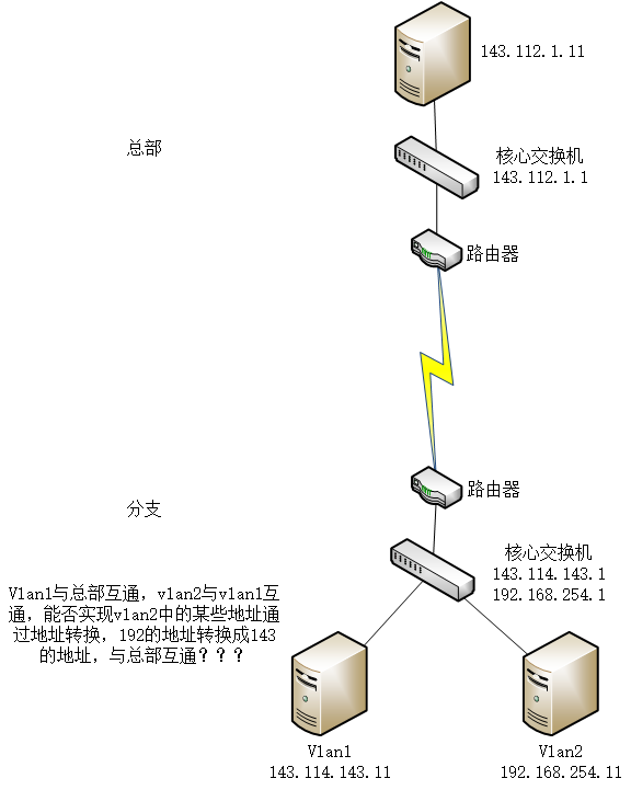 总部和分部间是专线,如果用nat转换一下vlan2的地址的话,策略应该在交换机上做还是在路由器上做,
