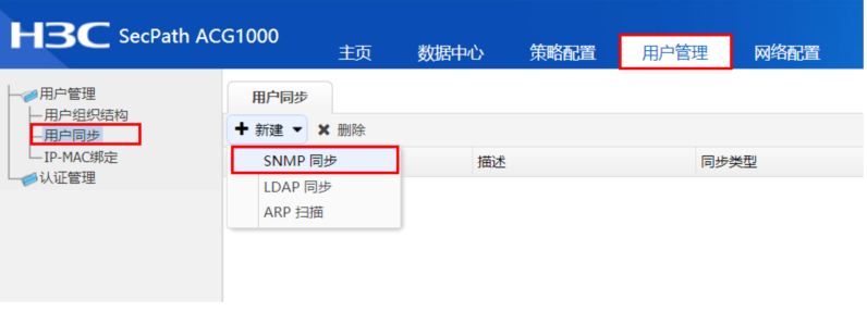 #点击“用户管理”>“用户同步”>“SNMP同步”。