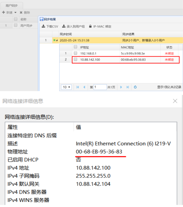 配置完成后点击同步结构发现已经学习到了客户端真实的MAC地址:
