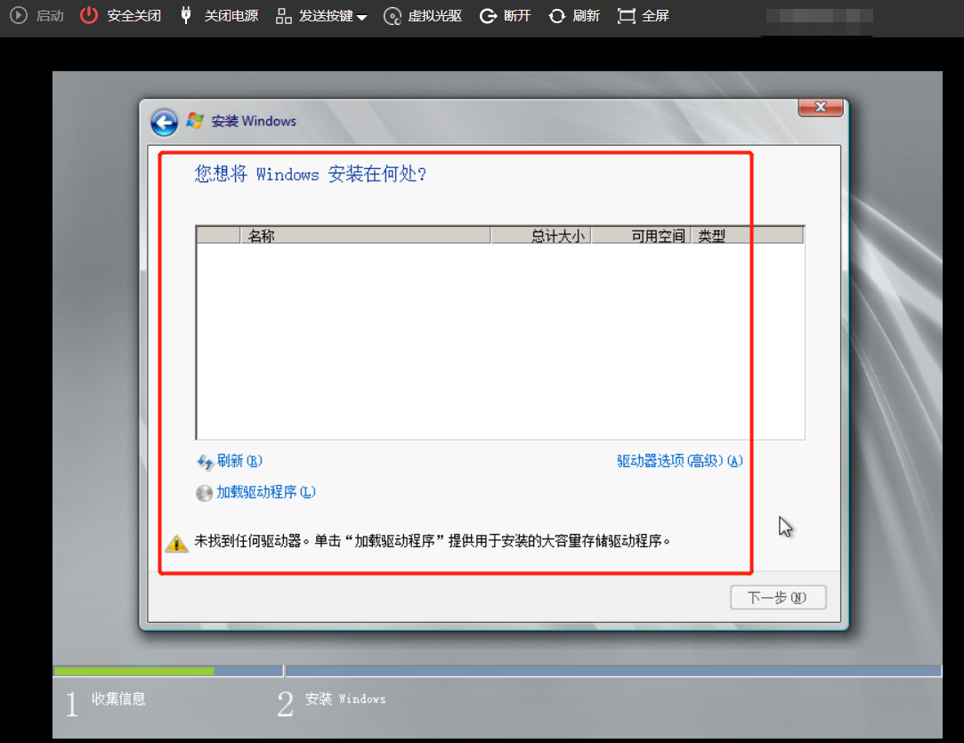 CAS平台新建虚拟机发现不了硬盘,无法安装