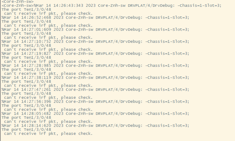 初步估计是 1/3/0/48接口互连有问题,可能板卡、接口或者连线异常