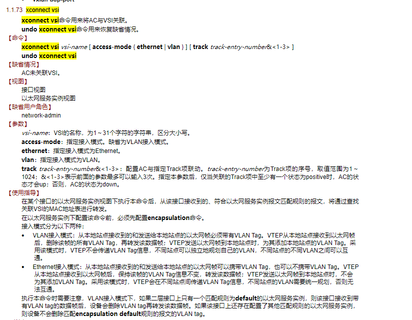 AC口配置xconnect vsi命令用来将AC与VSI关联时后面可以跟access-mode的vlan 和ethernet