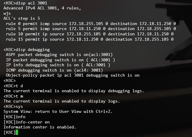 <H3C>debugging ip icmp 开了吗?