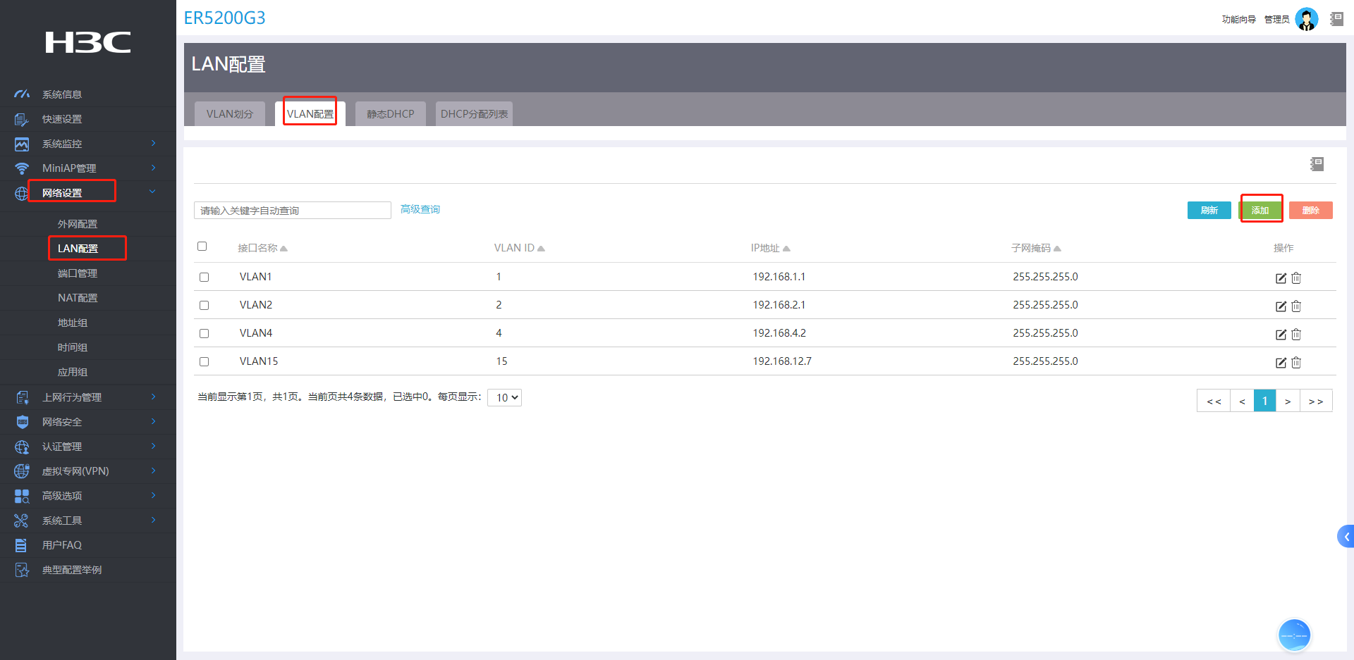 ER3200G3怎样划分VLAN,默认的是VLAN1 怎样修改其它VLAN