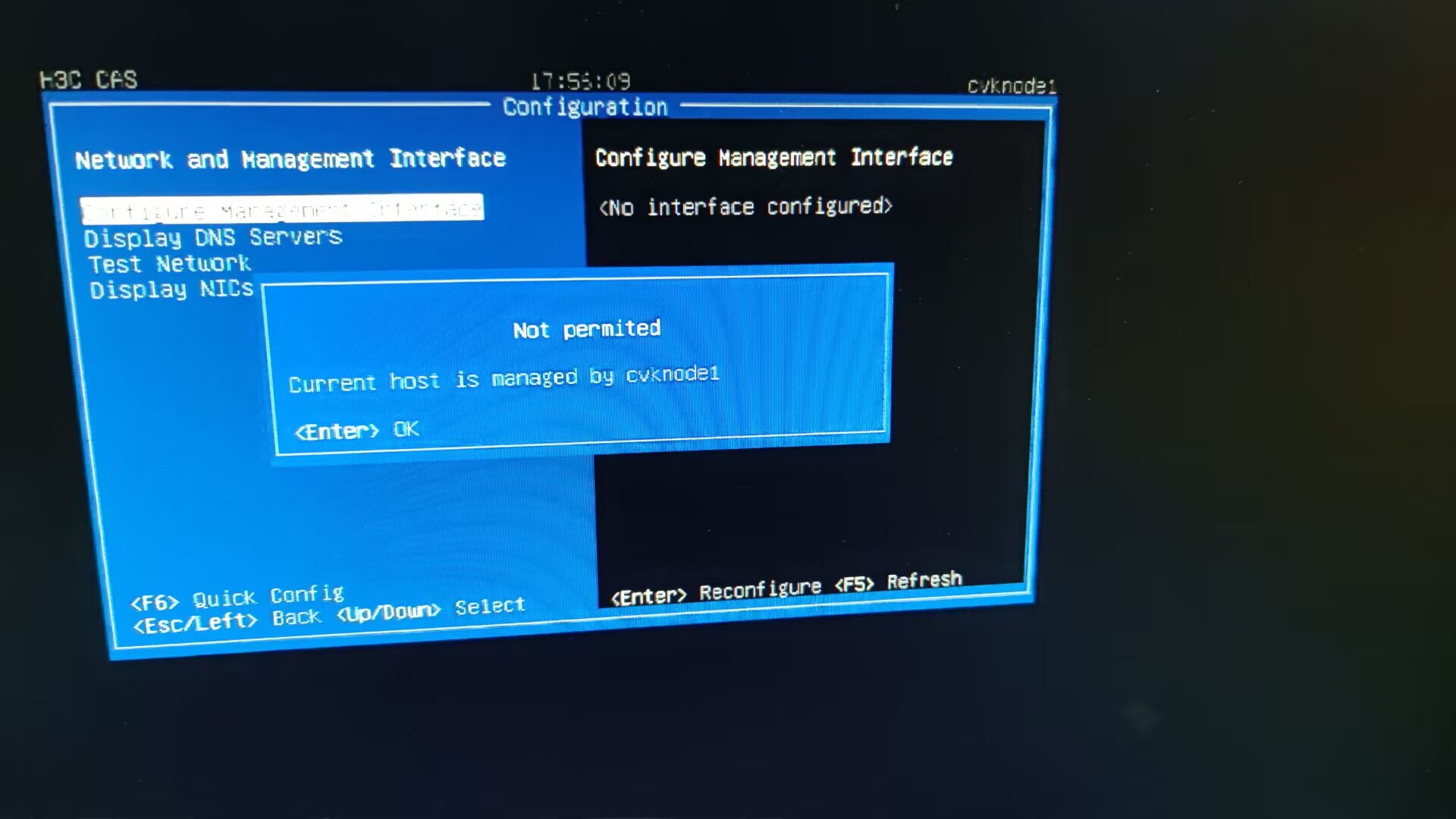 此主机从集群中删除,主机池中删除,之后再到后台页面去修改就可以了 如果前台页面登录不上进入此CVK的cmd shell或者ssh到命令行cd /root/.ssh rm -f mhost 将mhost删除之后再去修改地址