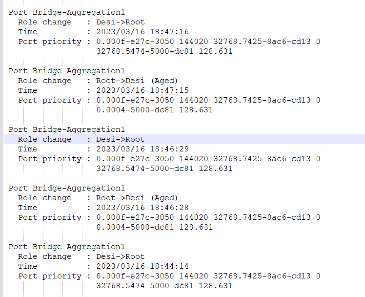Warning:Instance 0's port Bridge-Aggregation1 received an inferior BPDU from a designated port which is in forwarding or learning state.