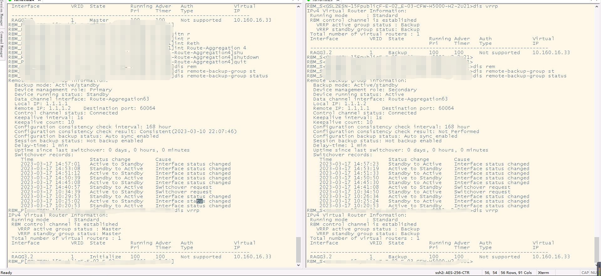 防火墙F5000+RBM+VRRP+OSPF切换异常