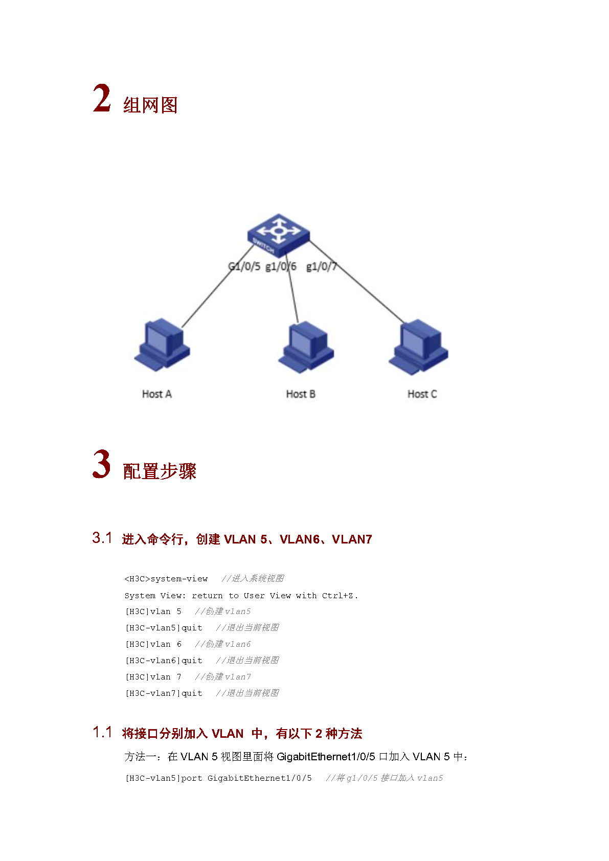 vlan 在同一台交换机上 将vlan 化给端口 pc配置相应的地址 掩码 网关 默认就通的