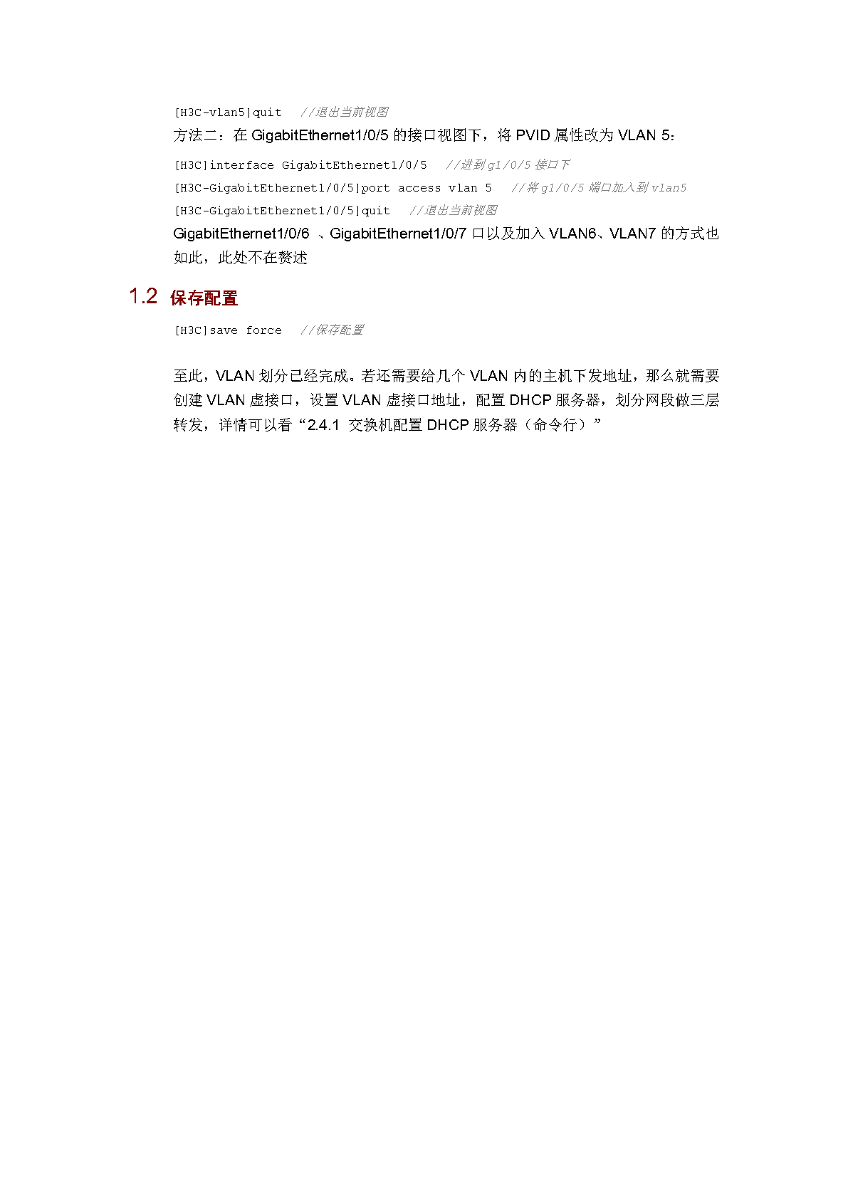 交换机接口配置 port access vlan 20