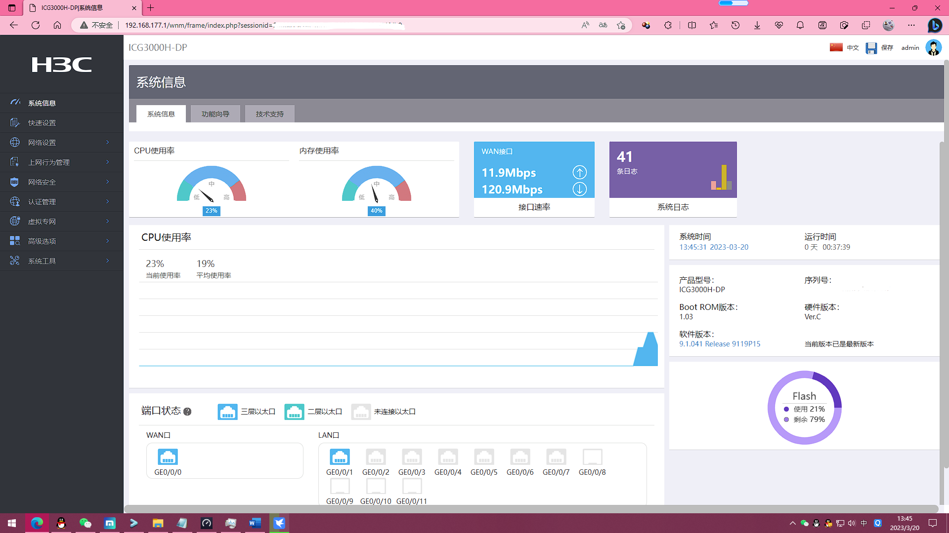 ICG3000H-DP,出厂固件是9.1.041 9119p12,界面如下
