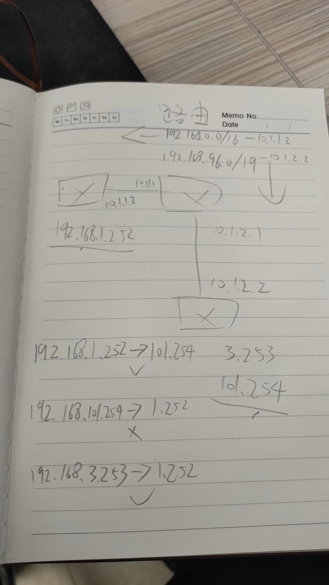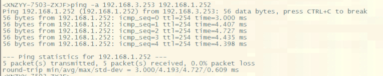 1.252通101.254、101.254不通1.252、与101.254在同一台设备上的3.253通1.252