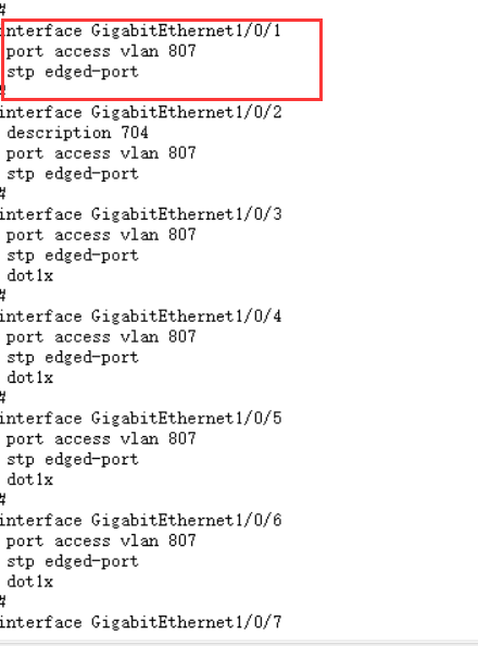 同一个交换机都是相同Vlan,其中的某一个端口配好几个同段的ip都可以正常上网,但是还是相同的ip换到这个交换机的其他端口就上不了网,端口插上的时候端口状态是up,但是就是上不了网,标红的端口就是我测试的端口,好几个同段的ip插在1口上就可以上网,但是插在这个交换机的其他口就上不了网,我看了端口配置基本相同。