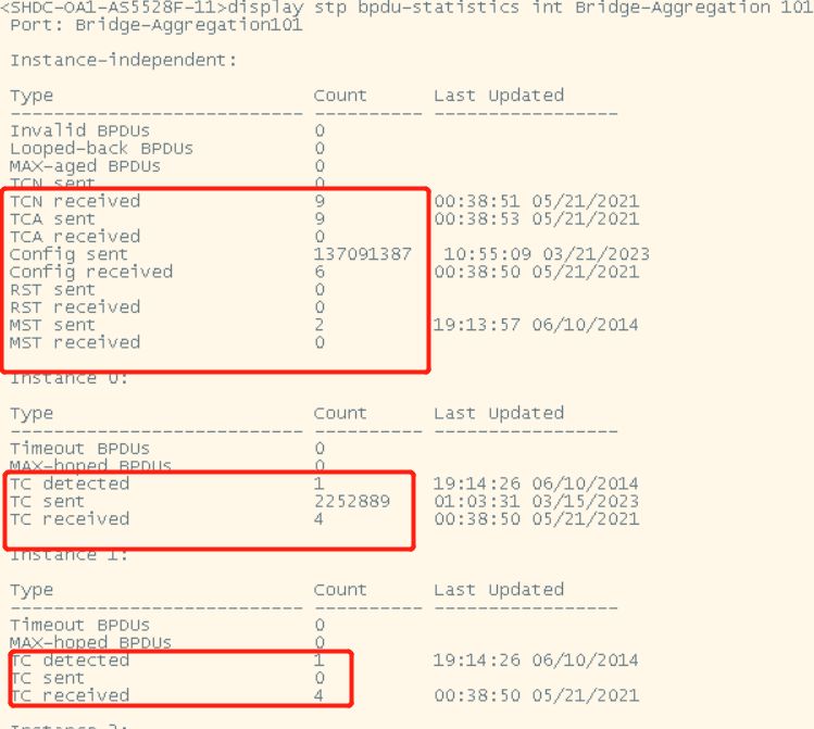 设备型号为H3C S5500-28F-EI,这是端口收到的报文回显。
