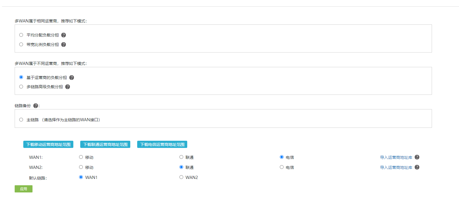 公司的ER5200G3路由器配置了负载均衡,但是目前监控流量发现还是几乎百分之90都是走的WAN1,这么看的话我做的负载均衡是否就没啥用,基本都没用上联通宽带,运营商地址库我也上传了,是华三官网给的地址库,想问的问题是,这个负载均衡究竟是如何计算的