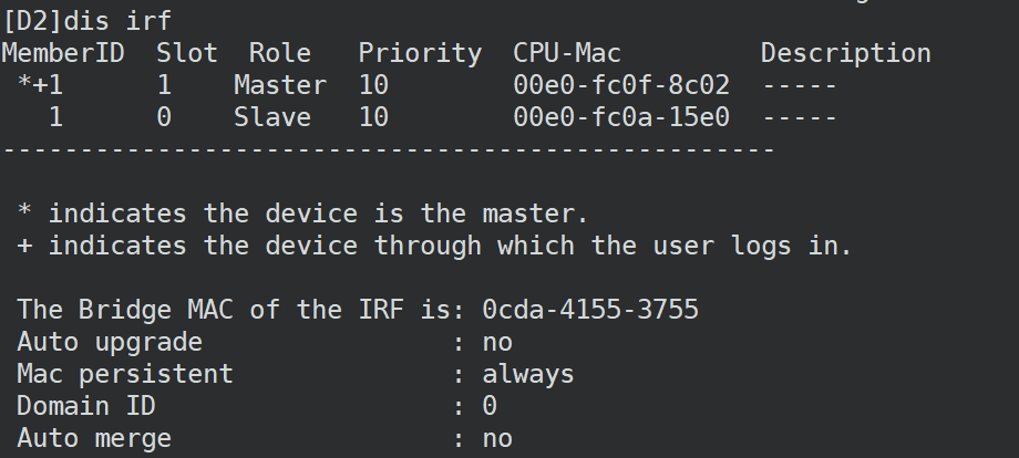 重启你那一台所有接口都是down的那一台吧,接口down了,本身也没流量对吧,按照原理来说,IRF竞选之后,失败的会自动重启的,你可以重启下试试,不要两台都重启