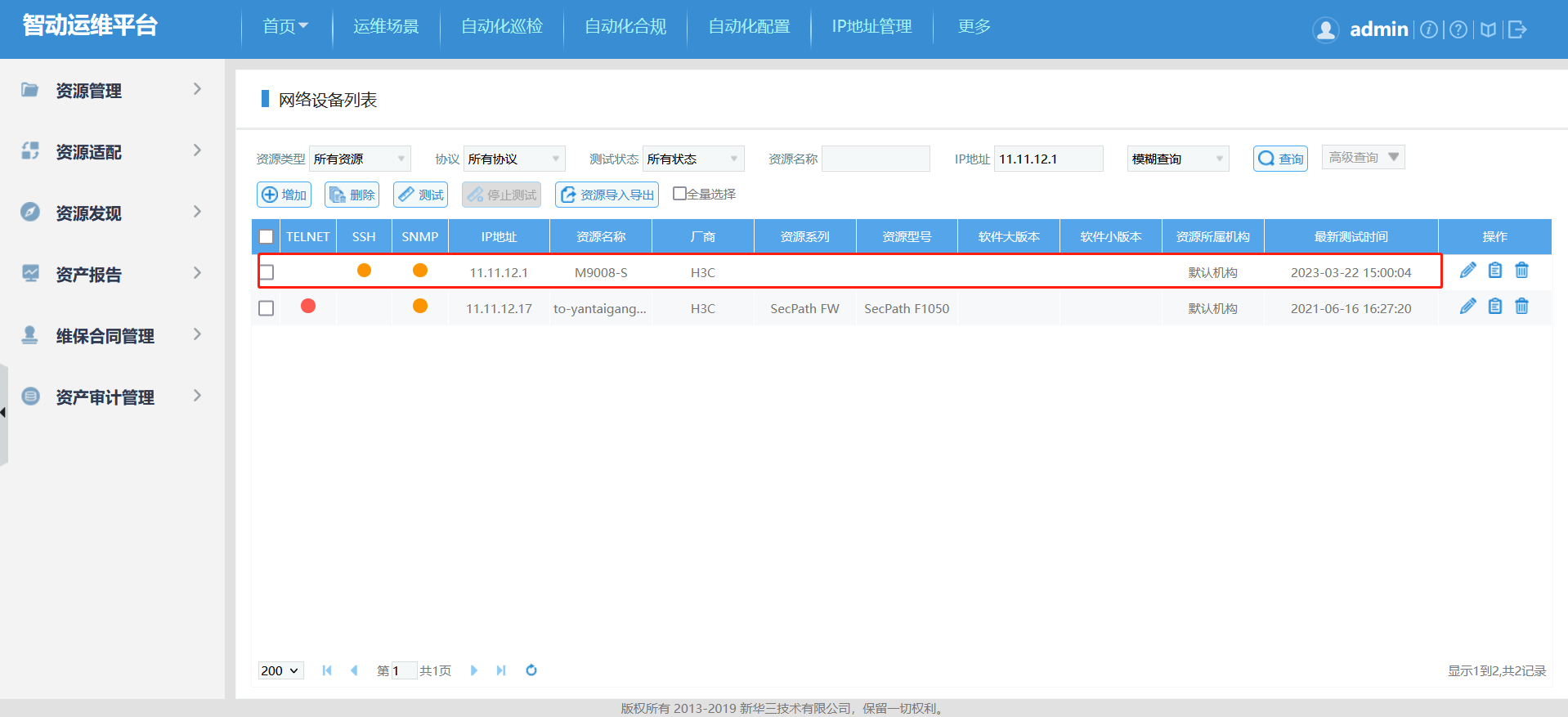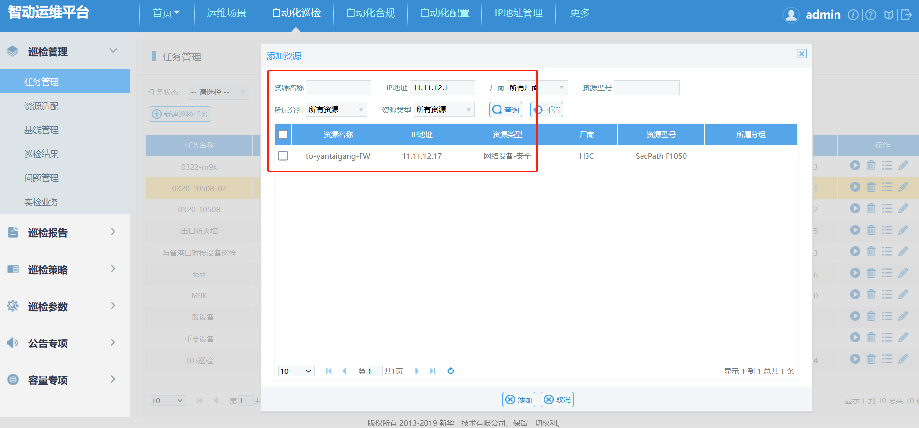 如图,在设备资产中有M9K的资产,但在配置巡检任务时添加资产查询不到M9K的资产。这是什么原因?