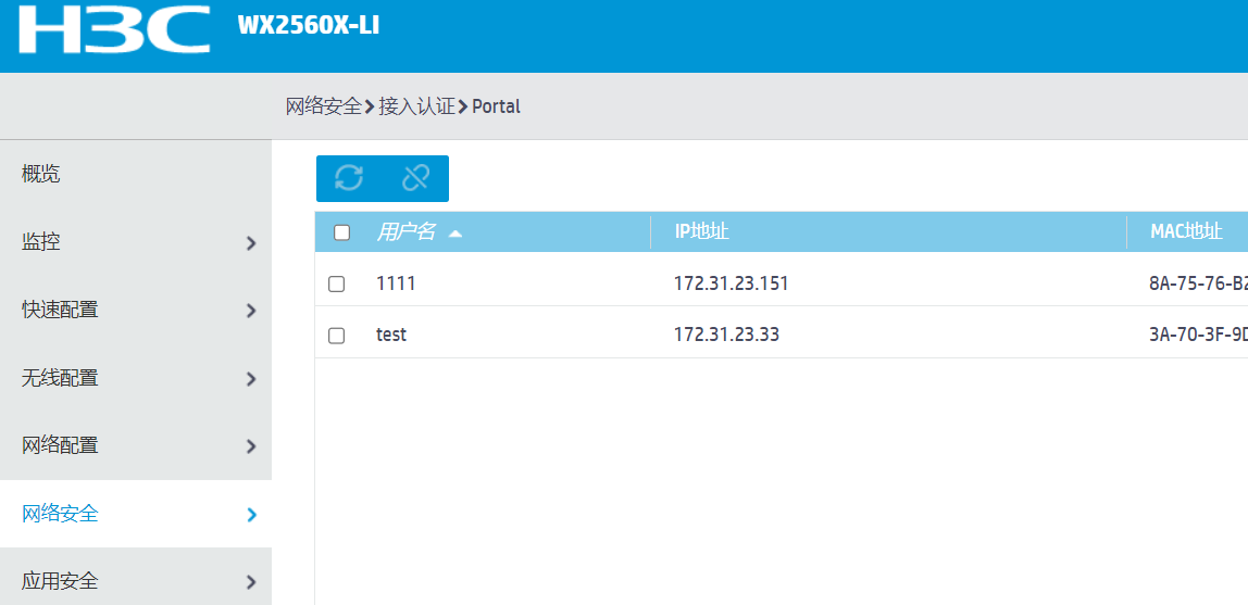 问题4:来宾用户已经删除,手机已经关闭wifi,下线。但是在AC的“网络安全”“接入认证”“portal”“在线用户”显示手机还是处于在线状态