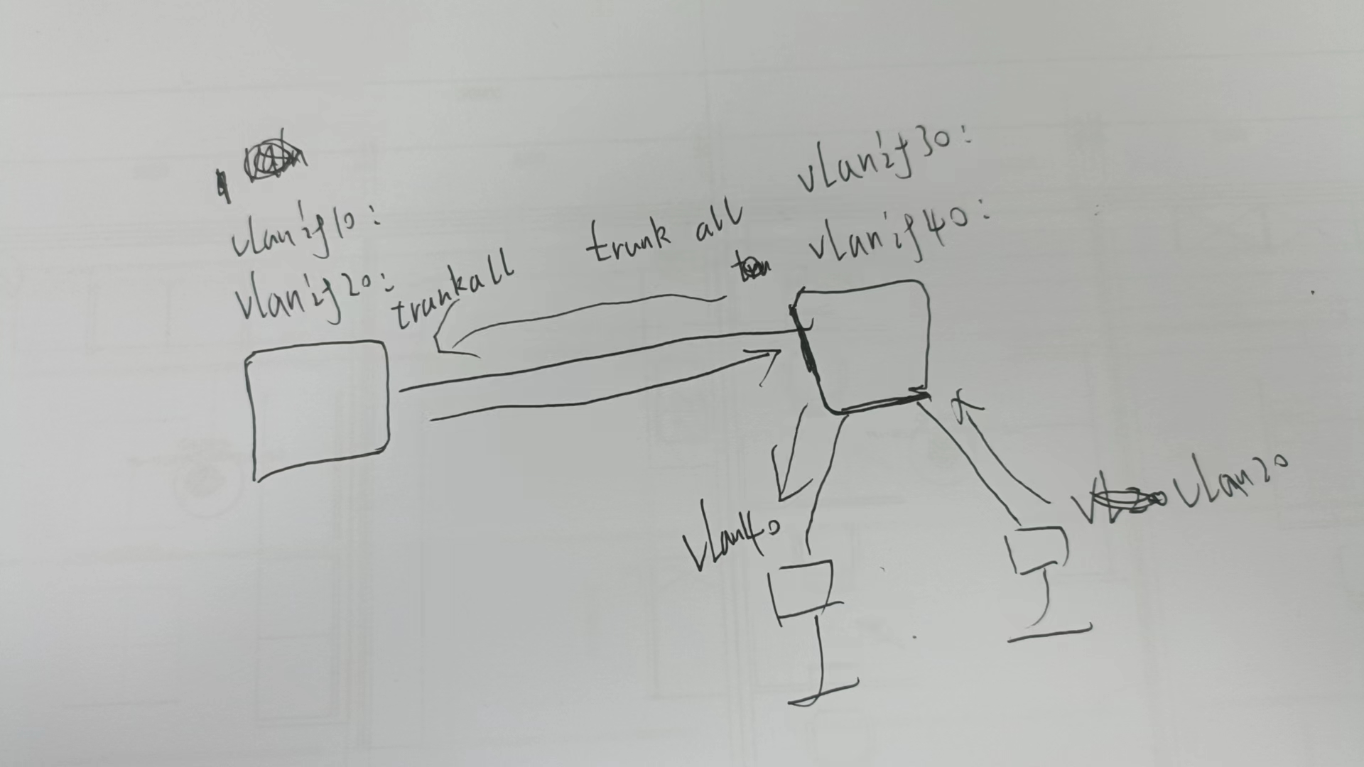俩个台核心各执上面的网关 要写路由 才能互通
