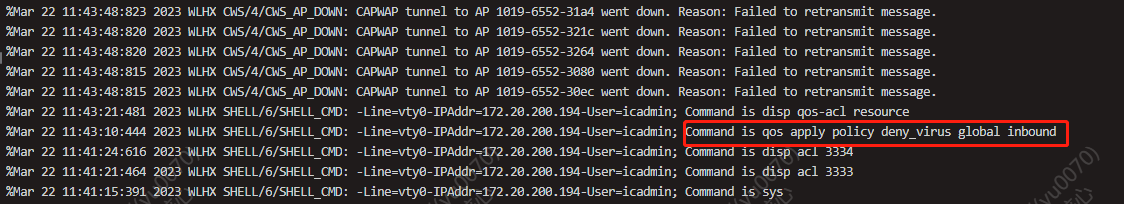 10510X核心设备融合ac上线ap,后在交换机全局配置QOS acl 打算阻断445端口,但是全局应用QOS ACL inbound 后,AP就会下线。核心上ping ap的管理地址可以正常ping 通,这是因为什么原因呢