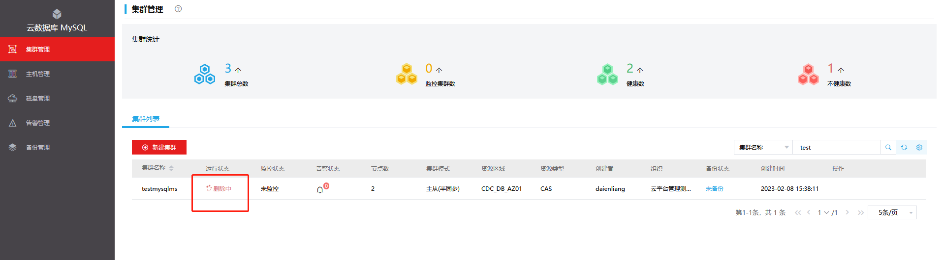 使用H3C CloudOS的管理控制台,检查MySQL数据库实例的状态。如果数据库实例的状态未能变成“已删除”,则说明删除操作未能完成。