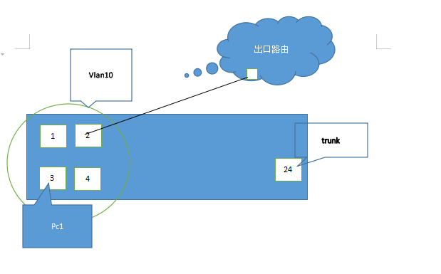 1234 处理vlan 10中,如果将2接入路由口子,则pc1能上网