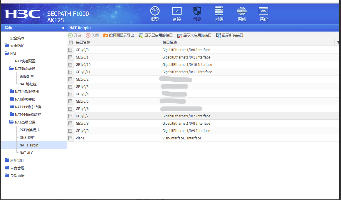 F1000-AK165 在web界面怎么开启关闭 nat hairpin enable
