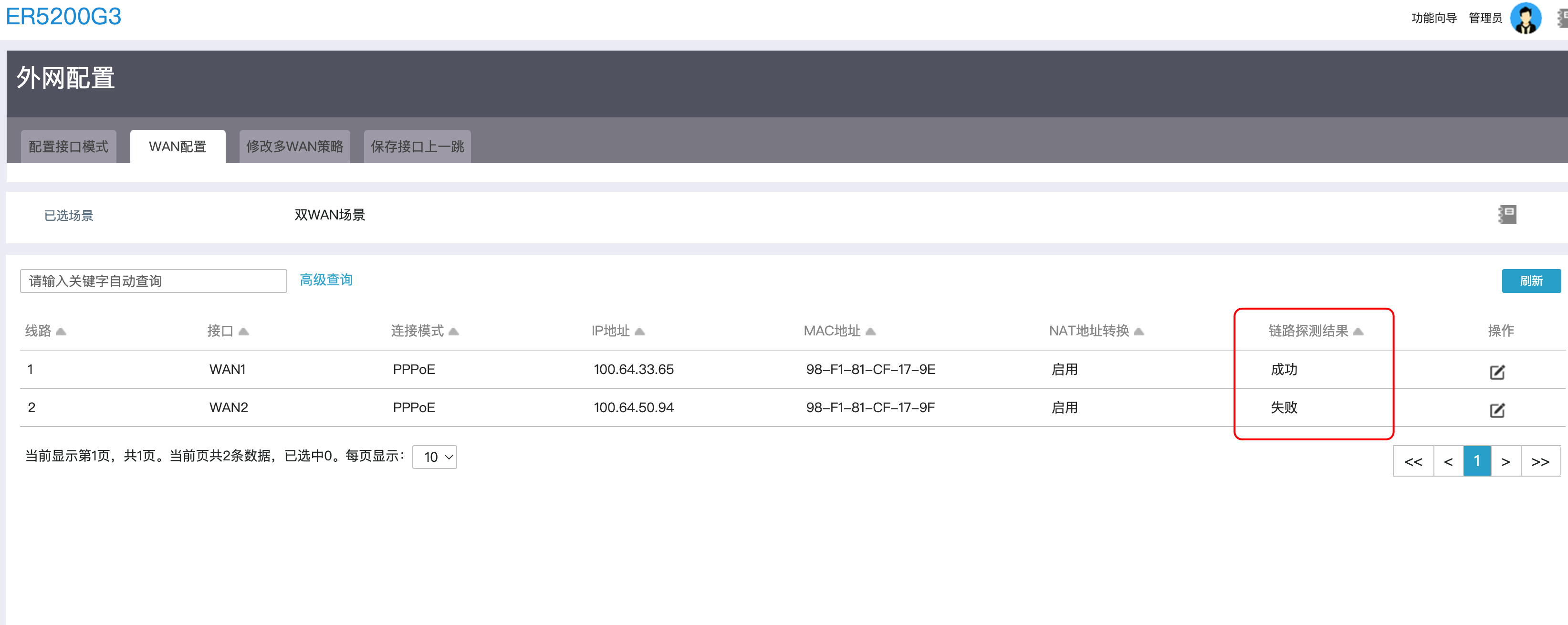 你看下你配置的检测地址是什么,修改为运营商DNS或者是网关地址
