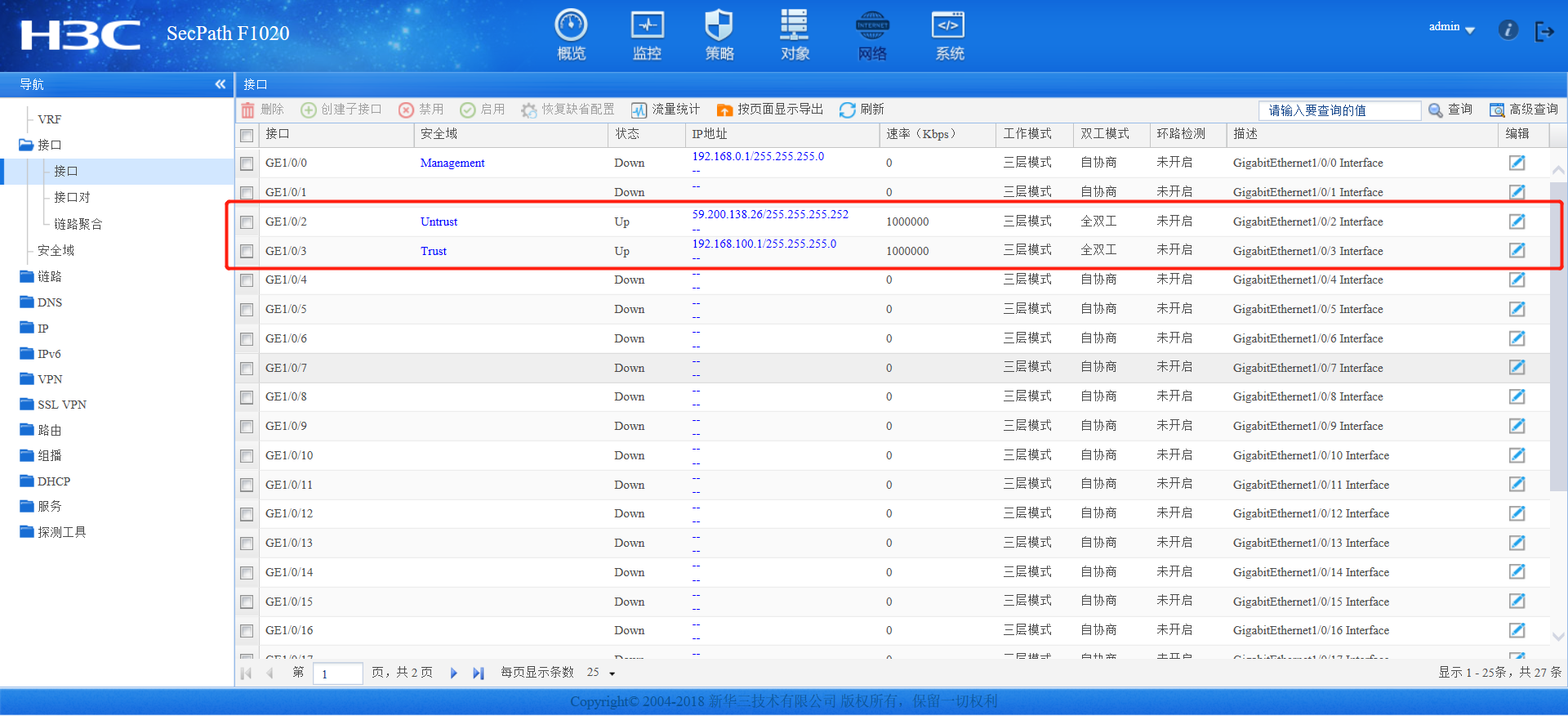 有一个 G1/0/2的nat outbind