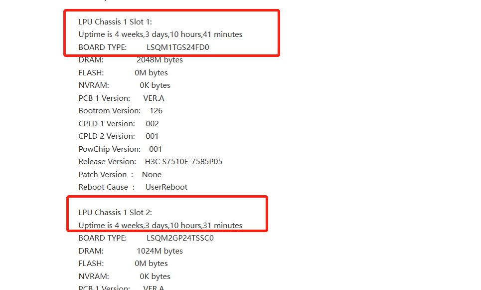 通过display version查看各板卡运行时间
