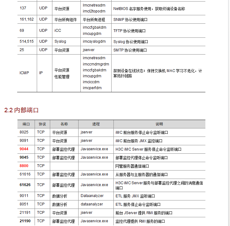 137 | UDP | 平台资源 | Imcnetresdm imcl2topodm | NetBIOS名字服务使用,获取终端设备名称 |