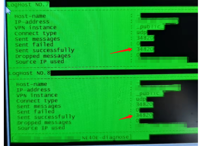 华为设备在诊断模式下可以看到向目标主机成功发送了日志消息