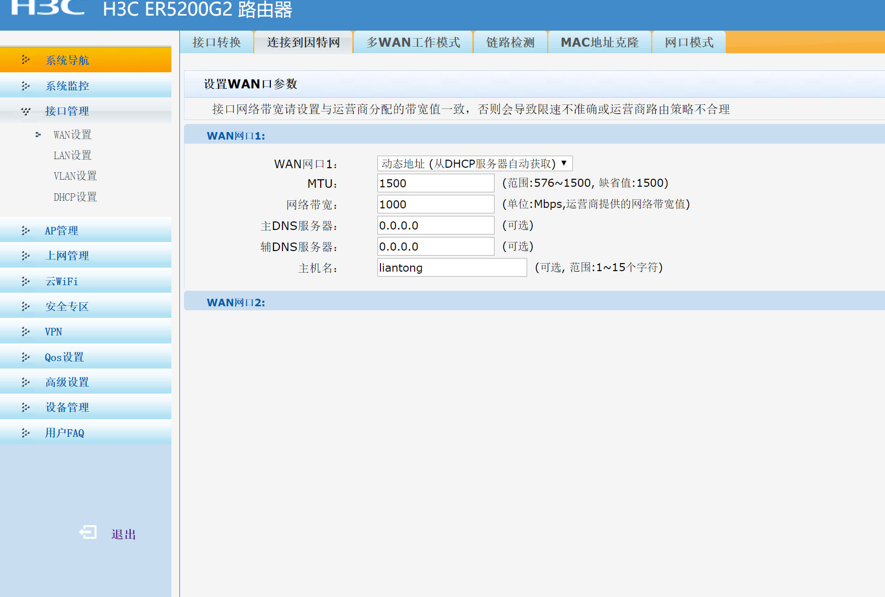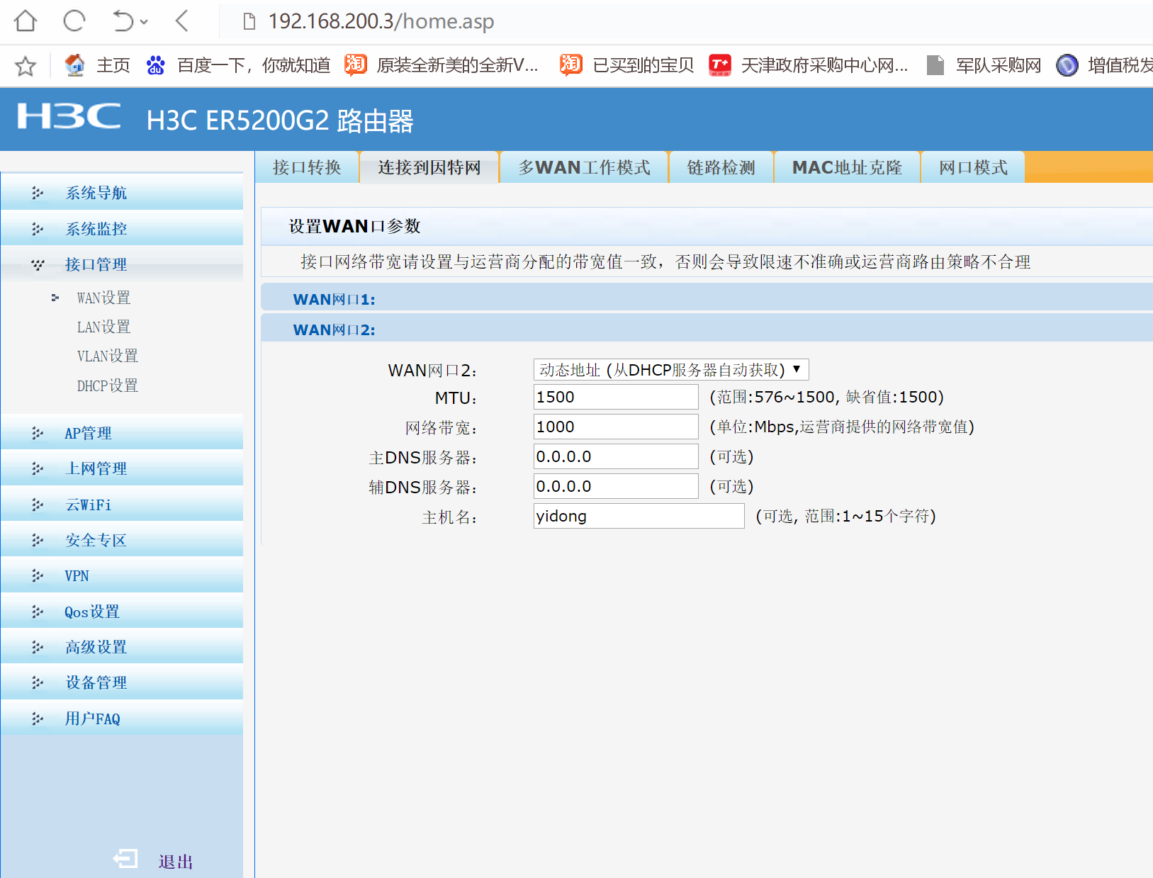 第二条移动 宽带 是WAN网口2:给看看配置对不