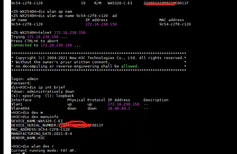 AP: H3C Comware Software, Version 7.1.064, Release 2449P11